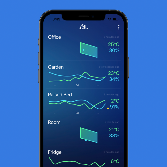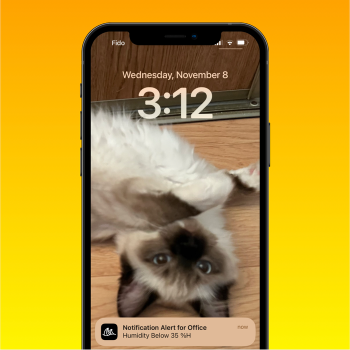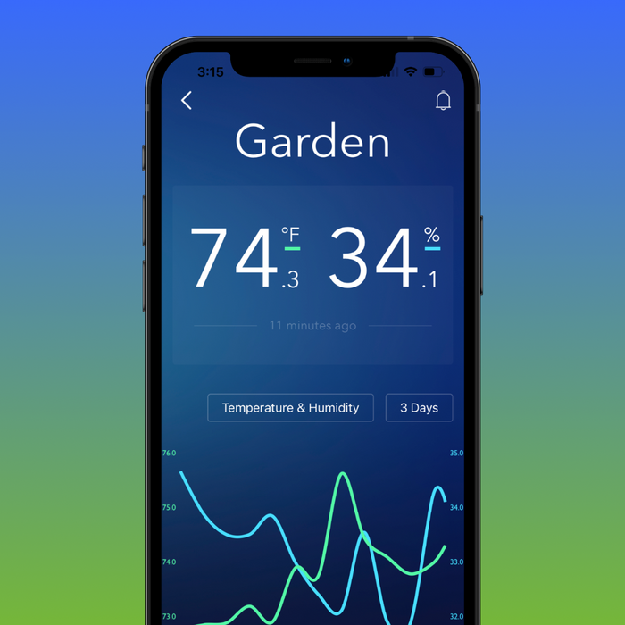 Kokonaut sends push notifications if temperature, humidity, or vpd values deviate from user defined thresholds. It also Notifies you if the Sensor is experiencing Wi-Fi connectivity issues or if the battery is running low.